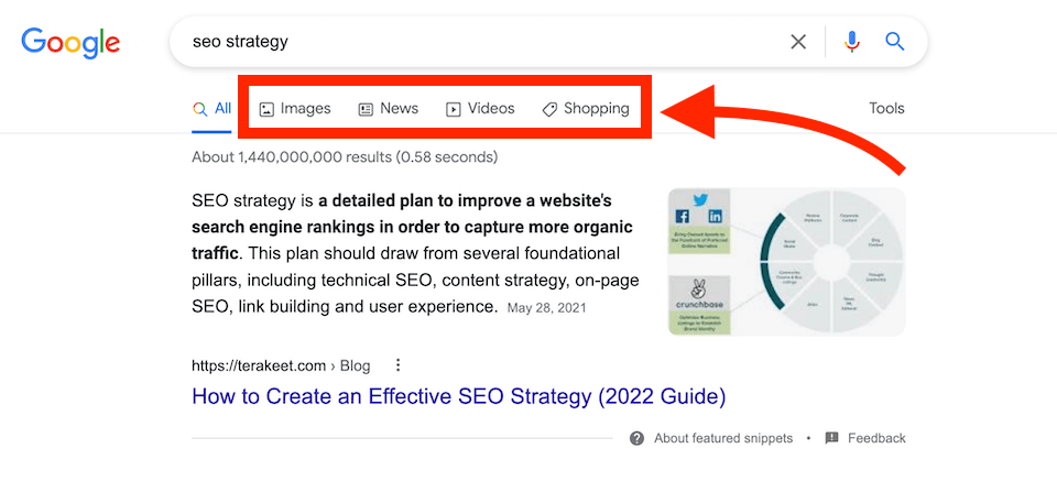 Google’s accentuated snippets, which answer in a box at the crown of the page so patrons don’t have to go into any organic results, are an excellent example of universal results. Other examples include images and news results.