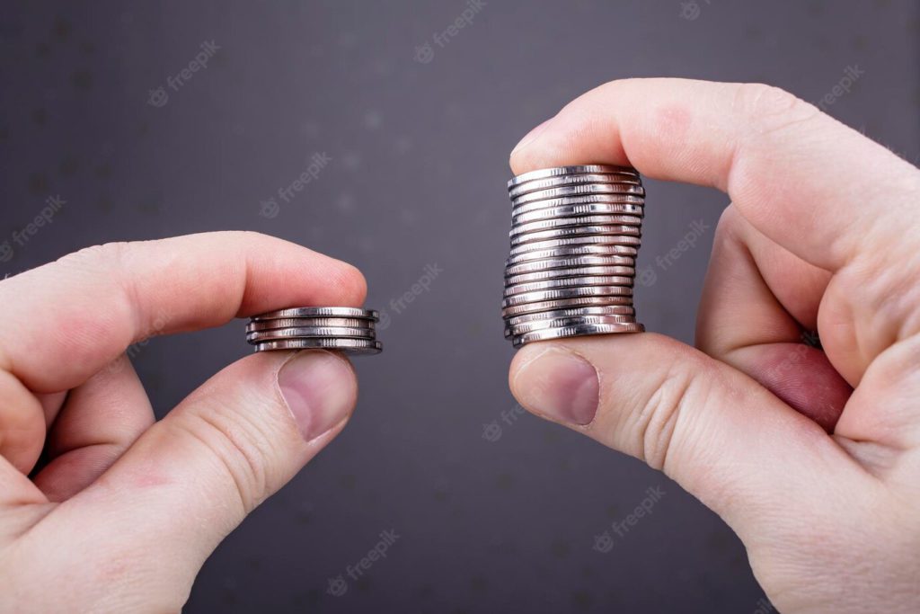 The above picture shows how scale and proportion are used to accurately communicate how the right hand with more coins is more appealing than the left with just a few coins. This design principle is mainly used in advertising and marketing to showcase to the audience how much more or how important their product is as opposed to what is available in the market.
