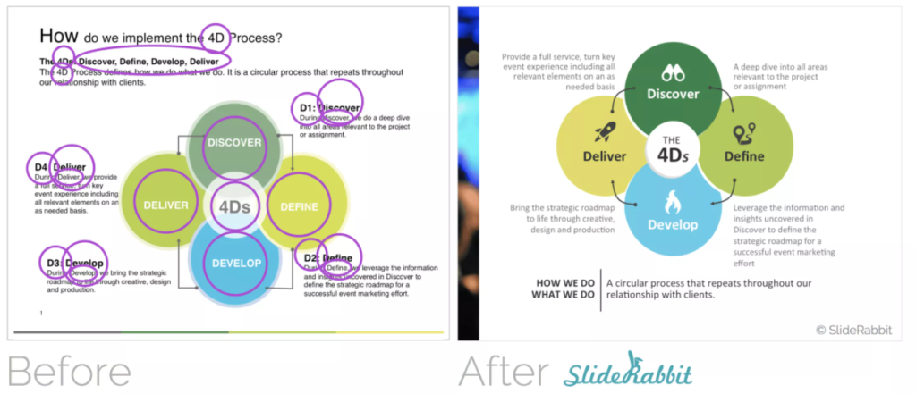 You also need to remove redundancy and ensure that you are painting a complete picture in the as minimal text as possible while keeping the audience engaged.