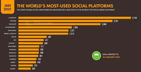 - WhatsApp is also the third most used social media platform in the world. The next one on the list of WhatsApp user stats is that WhatsApp is the third most used social media platform. More than 2 billion individuals use it regularly.
