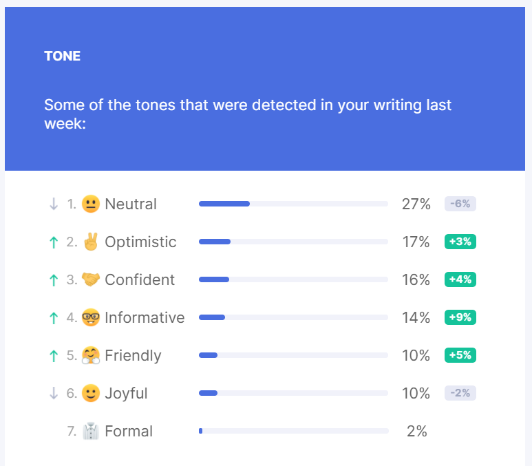 Grammarly users receive a mail once a week that shows stats on ‘Tone’.