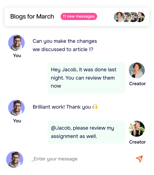 Project-wise chat space and tagging features can help ensure that everyone on the content team is held accountable