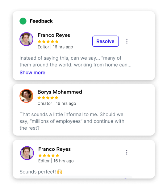Content teams can respond to team requests and feedback quickly and efficiently, resulting in a timely output